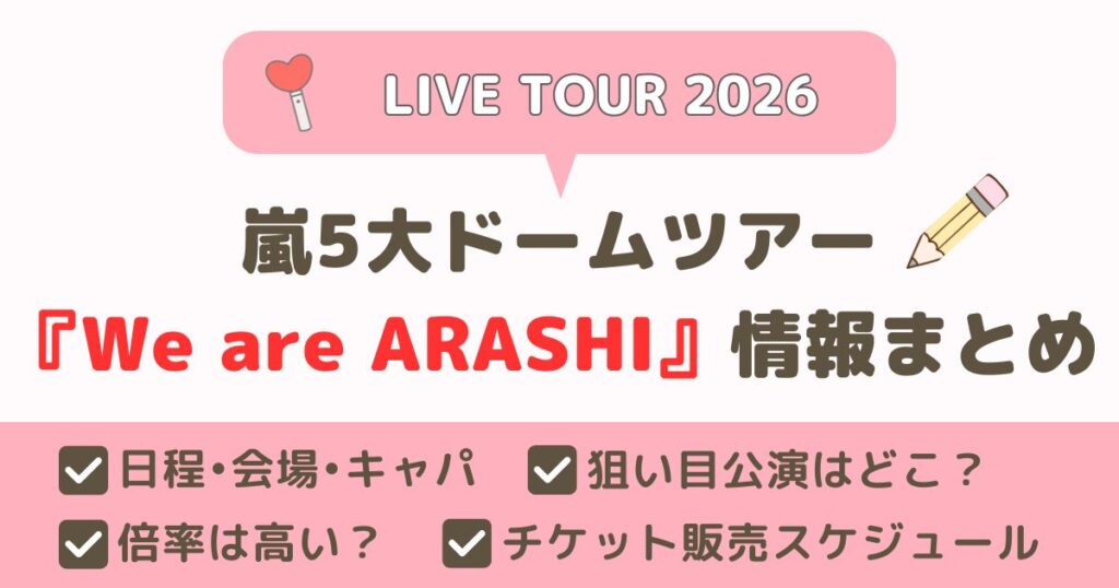 【2026】嵐5大ドームツアー 『We are ARASHI』情報まとめ 倍率は高い?狙い目の公演は?