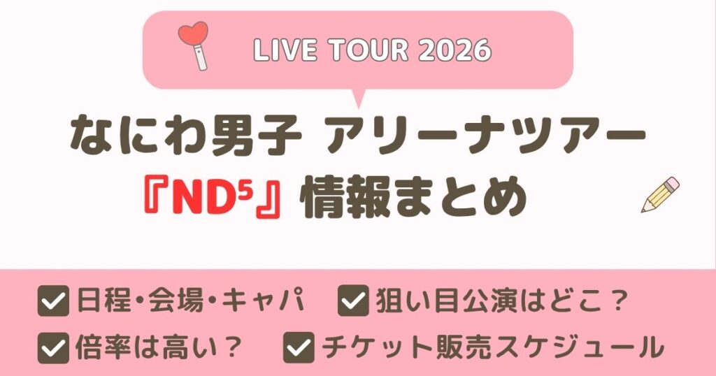 【2026年】なにわ男子 アリーナライブツアー「ND⁵」情報まとめ|倍率は高い?狙い目の公演は?