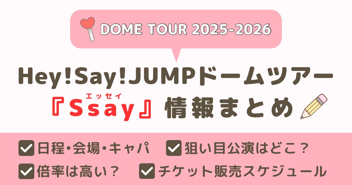 【2025-2026】Hey!Say!JUMP 4大ドームツアー 『S say』情報まとめ 倍率は高い?狙い目の公演は?