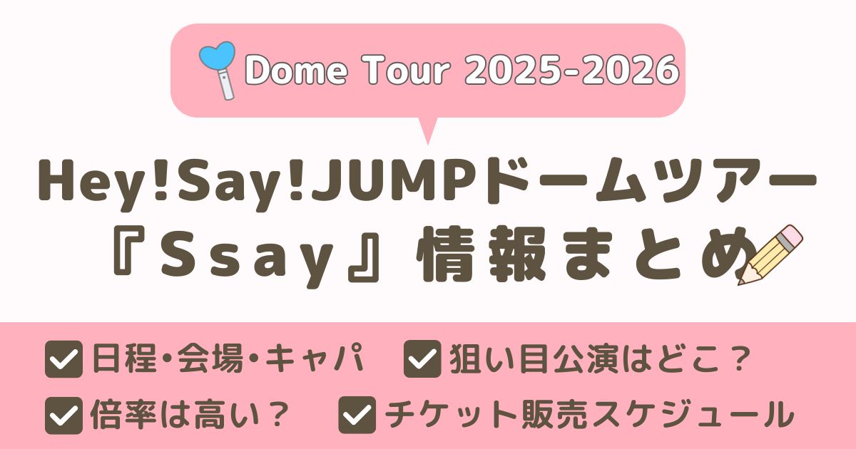 Hey!Say!JUMPのドームツアーでは4都市10公演、動員は最大約53万人になります。なお、ステージ構成によって収容人数は変動するので参考値となります。