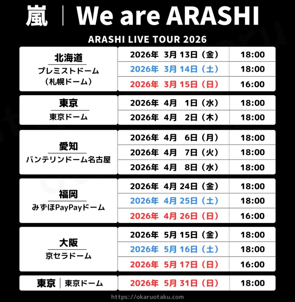【2026】嵐5大ドームツアー 『We are ARASHI』情報まとめ 倍率は高い?狙い目の公演は?