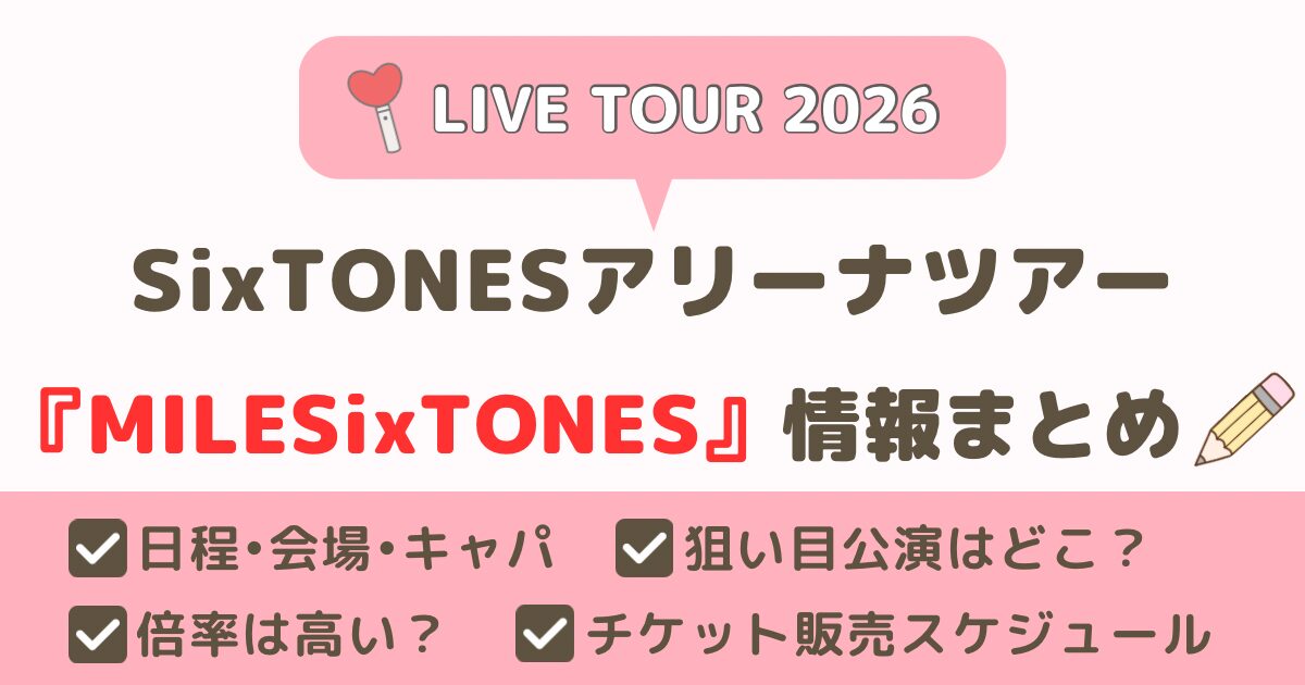 近くで会えるのが嬉しい反面、大人気のSixTONESのアリーナツアーとなると果たしてチケットが取れるのかお悩みの方も多いですよね。