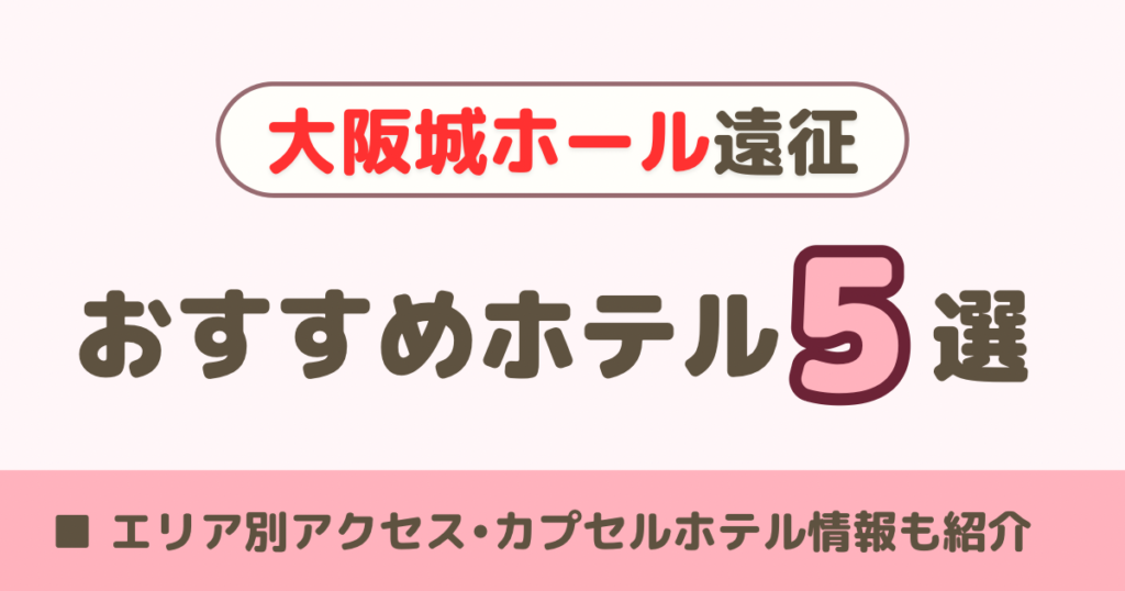 大阪城ホールのライブに参戦するとき、「どのエリアに泊まればいいんだろう?」と迷いますよね。 この記事では、大阪城ホール遠征におすすめの宿泊エリアとホテルを紹介します。 城ホ遠征で泊まるなら、以下のエリアがおすすめです。 OBP・大阪ビジネスパ... -