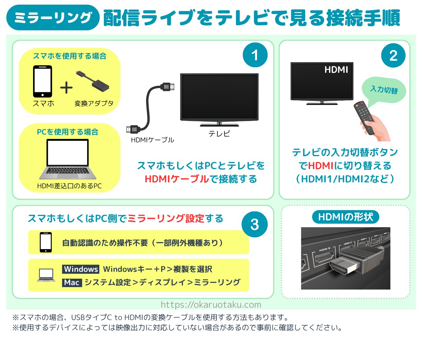 HDMI接続でミラーリングするのに必要なもの