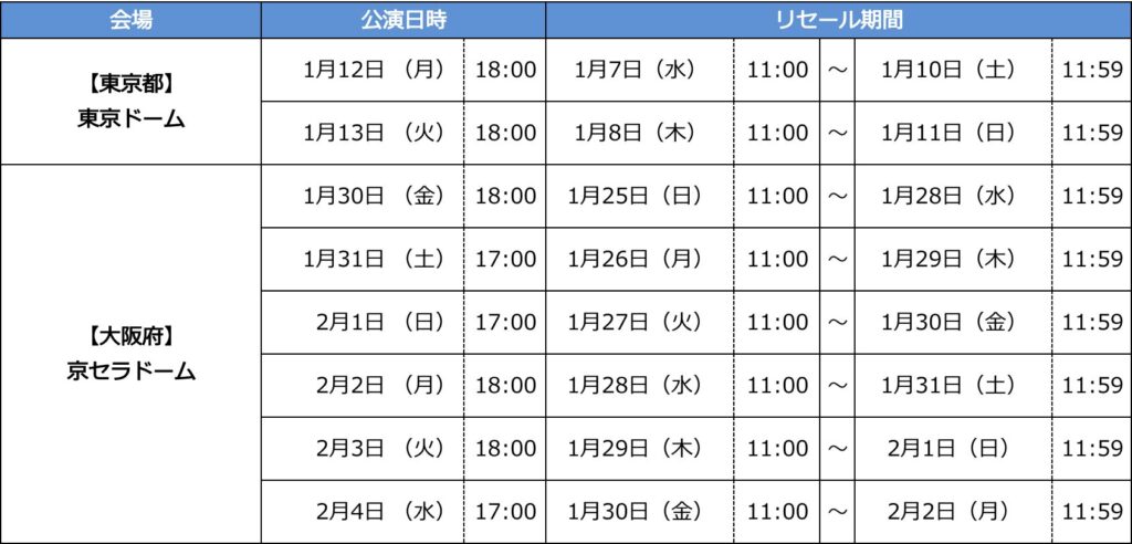 1月30日(金)の京セラドームの追加公演が発表されました!