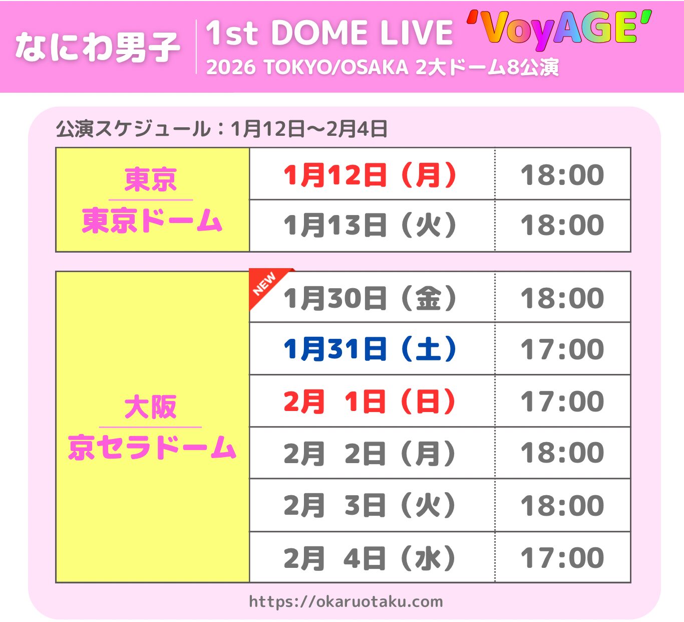 【2026年】なにわ男子 1st DOME LIVE 『VoyAGE』 2026 情報まとめ 倍率は高い?当たりやすい公演は?