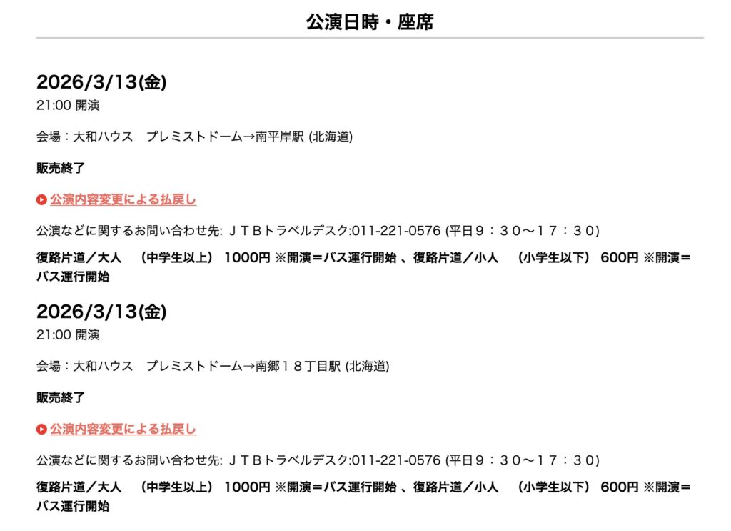 北海道はもともとホテルの絶対数が少ないため、ドームツアーが発表されると札幌市内だけでなく近郊のホテルまでほぼ即日で埋まります。通常価格の2〜3倍になることも。ツアー発表と同時に予約するのが絶対鉄則です。
