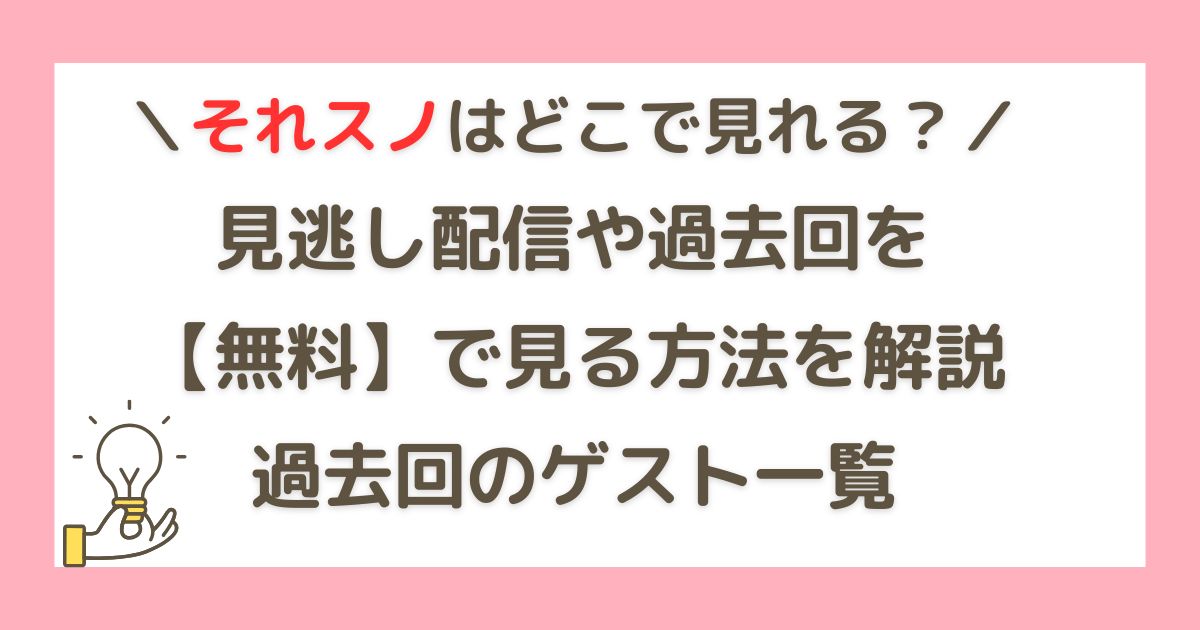 人気番組がゆえに、このようなお悩みの方も多いはず。そこでこの記事では、「それスノ」が見れる動画配信サービスを徹底解説します。