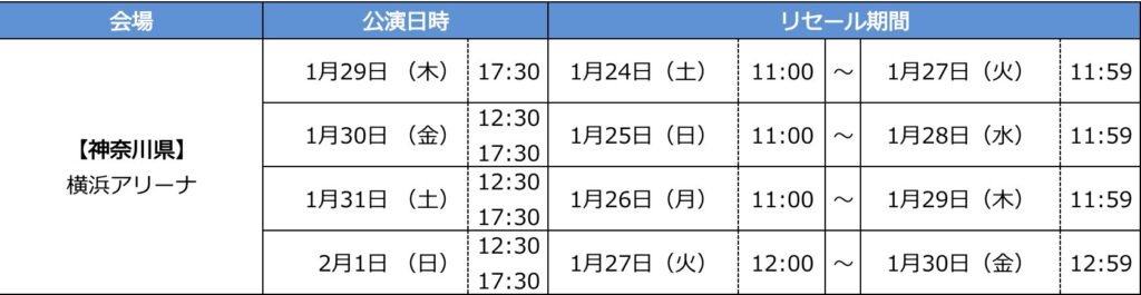 | 【横浜アリーナ】 キャパ17,000人 楽天トラベル周辺ホテルを探す | 1月29日(木) 17:30 |